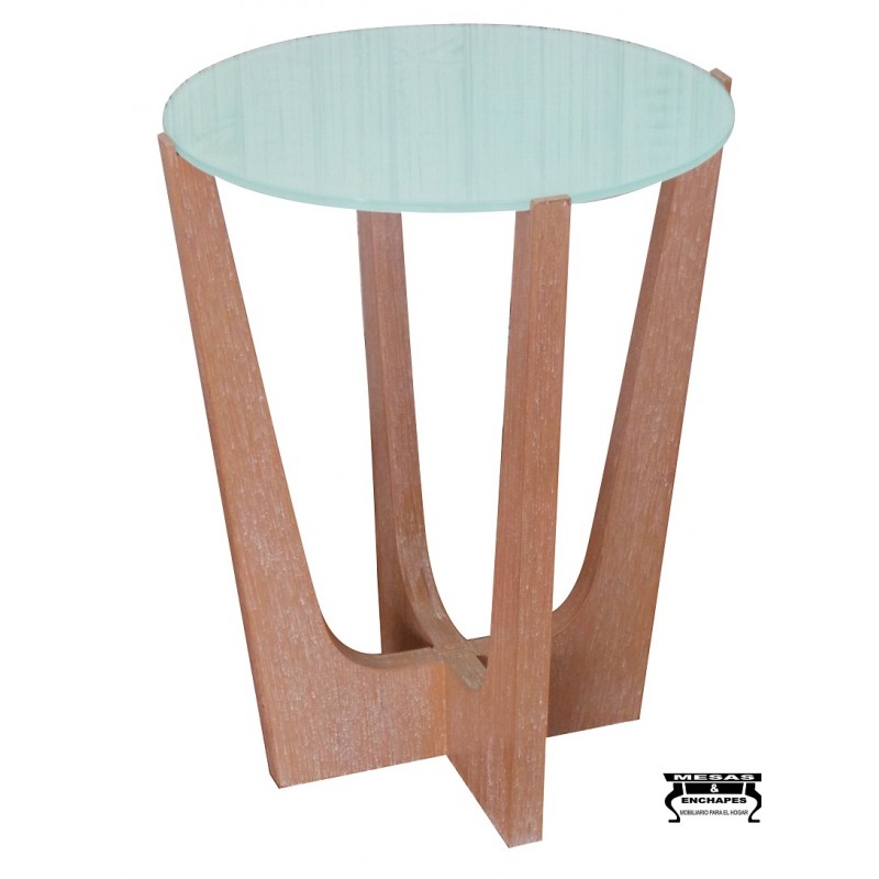 Mesa decorativa en DKP natural y vidrio blanco.