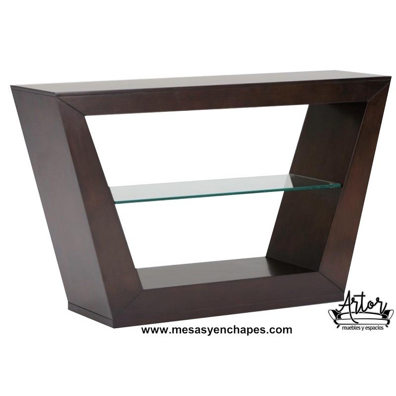 Consola con entrepaño en vidrio 10mm base rectangular.